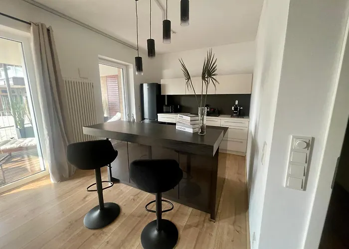 Modern Weserblick Apartment Bremen, som ligger ungefär 10 minuters promenad från Hochschule für Künste Bremen, erbjuder tillgång till många sevärdheter i närheten. Gästerna kan koppla av och njuta av utsikten över floden från en terrass i den här lägenheten med 1 sovrum.